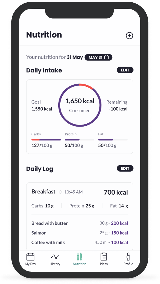 Connect your workout, nutrition and sleep program and our nutrition and body composition tracker to keep yourself accountable.